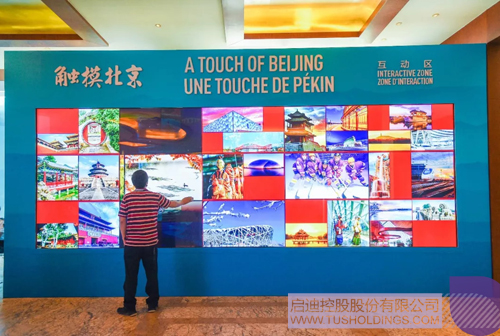 一大片觸摸屏引起了記者的注意。工作人員介紹,這是“觸摸北京”互動區(qū),采用雷達感應多點觸控交互技術,可滿足5人同時觸摸滑屏翻閱,觀賞400幅展示北京城市形象的圖片。
