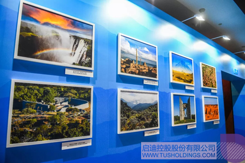 接下來是“多彩非洲”圖片展,選取了與中國建交的53個非洲國家的文化遺產(chǎn)和自然風光,還有一張非盟總部大廈的照片。