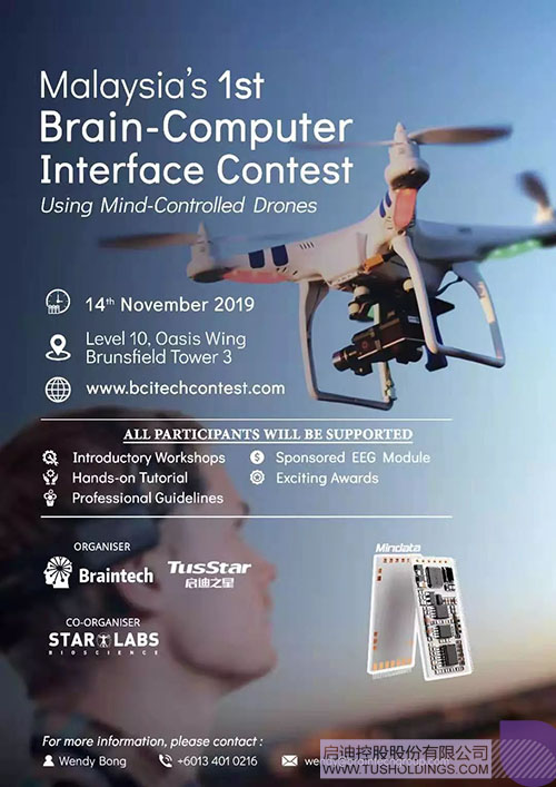 Braintech向與會的馬來西亞各高校大學(xué)生介紹:開幕儀式后,一系列的預(yù)熱與培訓(xùn)活動也將陸續(xù)登陸:推介會、講座、論壇、創(chuàng)意工坊等活動,讓參賽者更好地迎接比賽。比賽中,參與者需要用腦波控制無人機(jī)飛行10碼,并對儀器進(jìn)行編程優(yōu)化,比賽中的優(yōu)勝者:冠軍將獲得3000令吉,亞軍2000令吉,季軍1000令吉,并設(shè)有5個(gè)鼓勵獎(500令吉)。
