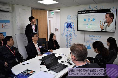 金勤獻(xiàn)院長一行與Owlstone、Biosceptre兩家劍橋的生命科技研發(fā)企業(yè)的負(fù)責(zé)人進(jìn)行交流,Owlstone是一家從事呼吸活檢技術(shù)全球領(lǐng)先的創(chuàng)新研發(fā)企業(yè),獲得多家知名風(fēng)險投資青睞,目前與上海仁濟(jì)醫(yī)院合作開展肺癌早期檢測的臨床試驗(yàn);Biosceptre專注于開發(fā)針對nfP2X 7的下一代癌癥治療方案,目前已完成臨床I期試驗(yàn),該公司在獲得啟迪投資后正積極探索落地中國的方案。隨后,金勤獻(xiàn)院長介紹了清華大學(xué)在醫(yī)學(xué)領(lǐng)域強(qiáng)大的學(xué)術(shù)資源與研發(fā)能力,同時介紹了全球健康藥物研發(fā)中心與荷塘資本,他表示清華大學(xué)已經(jīng)建立起具備全方位創(chuàng)新服務(wù)能力的成果轉(zhuǎn)化體系,期待與世界前沿的生命科技研發(fā)企業(yè)在聯(lián)合研發(fā)、市場拓展、股權(quán)投資等開展多層次合作。