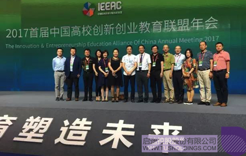 啟迪控股副總裁、啟迪之星董事長張金生(右六)和啟迪之星創投總經理劉博(左六)出席2017首屆中國高校創新創業教育聯盟年會