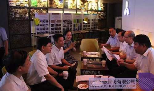 藍(lán)天立常務(wù)副主席(左二)一行在啟迪K-lab Coffee了解相關(guān)工作情況