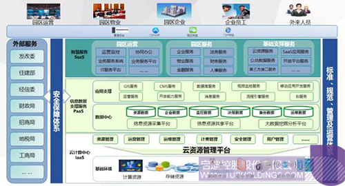 啟迪園區(qū)云以公有云的方式,通過移動門戶、PC門戶網(wǎng)站等方式,為用戶提供園區(qū)運(yùn)營、園區(qū)服務(wù)和支撐平臺。通過云架構(gòu),構(gòu)建覆蓋IaaS、PaaS、SaaS全部三個服務(wù)層面,集成啟迪控股、合作伙伴、第三方產(chǎn)品和應(yīng)用,為用戶提供全面的服務(wù)。