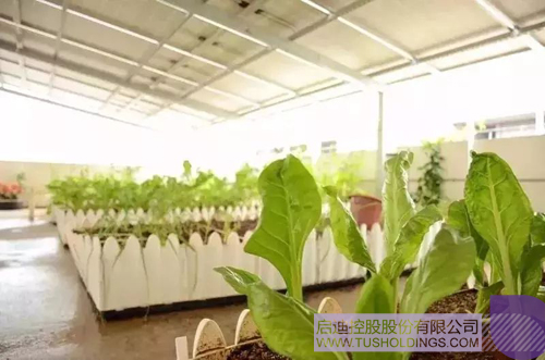 灌溉蔬菜的水來源于屋頂太陽能板收集的雨水和空調冷凝水;土壤肥料由建筑垃圾與糞便、酵素堆肥生產工藝產生。實現了資源循環利用、自給自足。