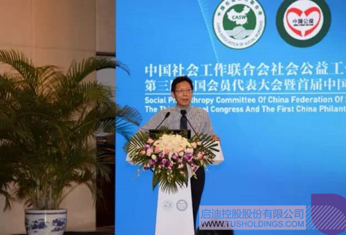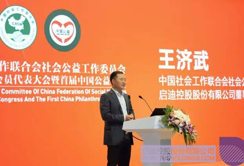 ▲  啟迪控股董事長、新任中國公益委員會主任王濟武講話