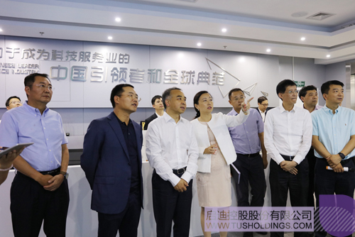 ▲ 四川省委常委、成都市委書記范銳平(前排左三)一行參觀啟迪控股數字展廳